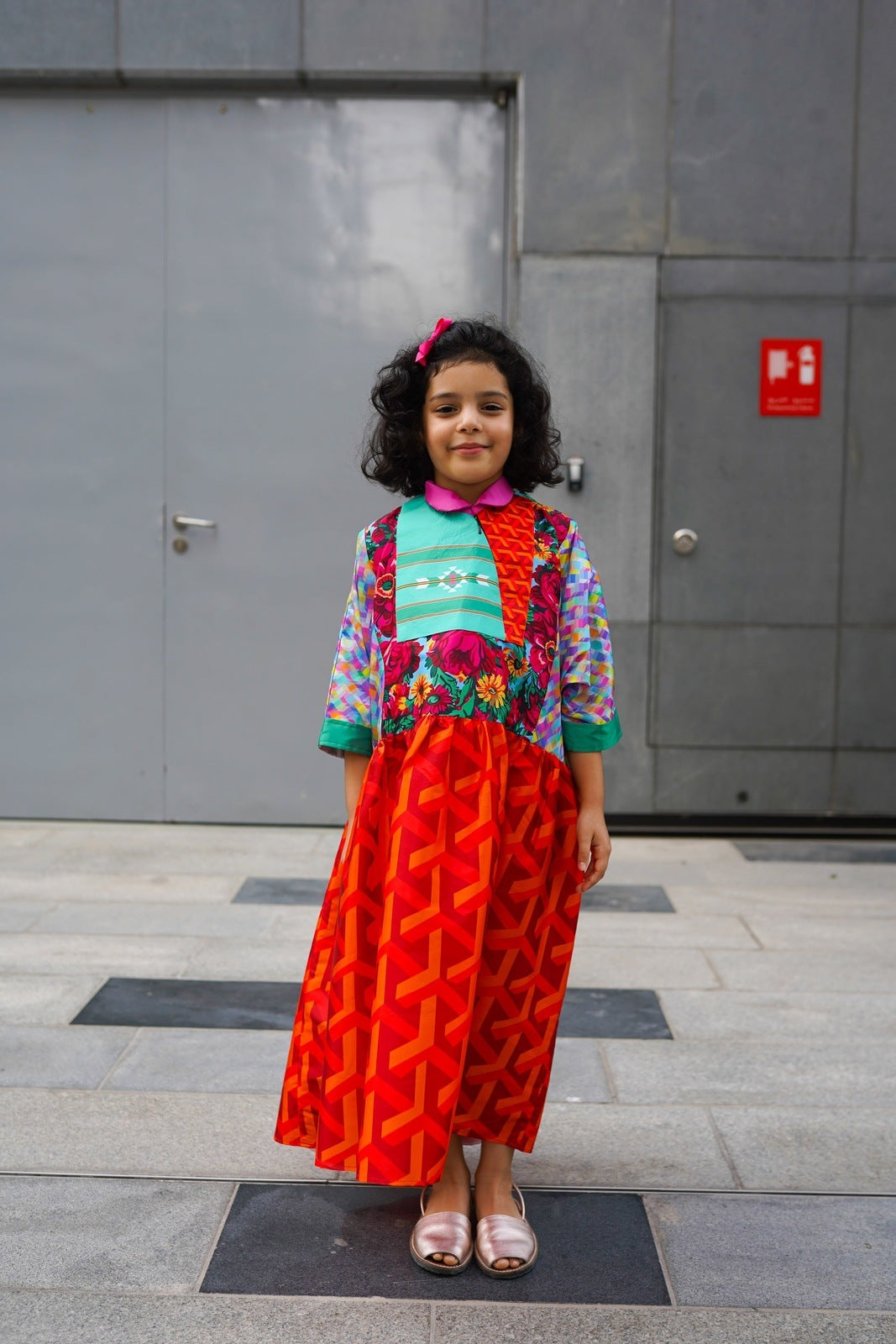 مثالي من عمر 18 شهرًا إلى 9 سنوات، مناسب لكل المناسبات، من أماكن الألعاب إلى الحفلات. يتضمن المزيج الفريد من الطباعات أزهارًا جميلة وأشكالًا هندسية، مما يمنح طفلتك مظهرًا جذابًا وعلى الموضة. يتم تكميل الفستان بياقة عالية مريحة وأكمام طويلة دافئة، لضمان بقاء طفلتك في راحة وأناقة طوال اليوم